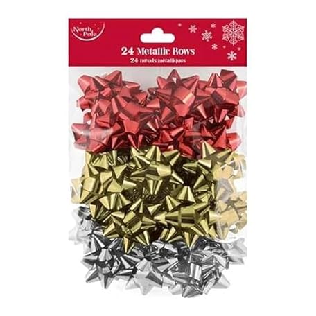 Sản phẩm Traditional Christmas Red, Silver & Gold Metallic Gift Ribbon Bows – Pack of 16 Festive Present Wrapping Accessories đang được bán với giá ưu đãi là $6.54 tại nước Anh.