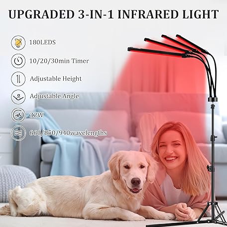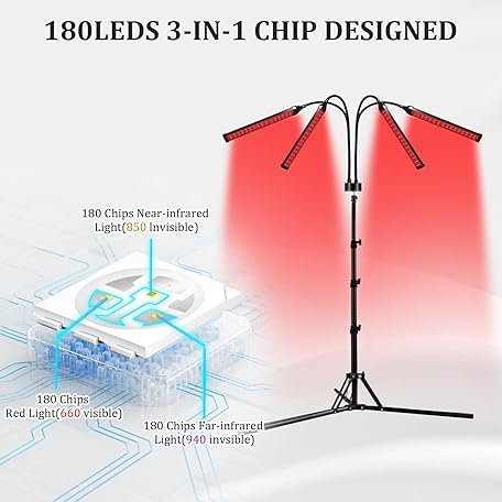 Thông tin sản phẩm Trayvespace Red Light Lamp, 180LED Infrared Lamp with Timer, Brightness Adjustable, 360°Rotating Red Light with Eyes Protection (660nm & 850nm & 940nm)