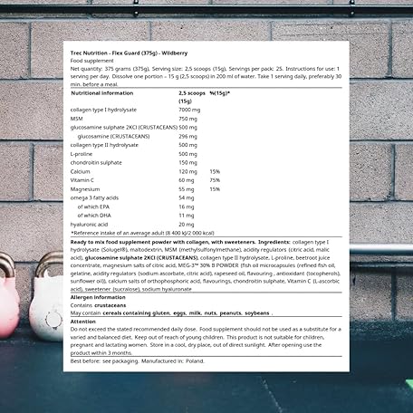 Thông tin sản phẩm TREC Nutrition Flex Guard - Wildberry - 375g Powder - Complex Dietary Supplement with Collagen, MSM, Glucosamine, Omega-3, and Hyaluronic Acid for Joint Support and Mobility