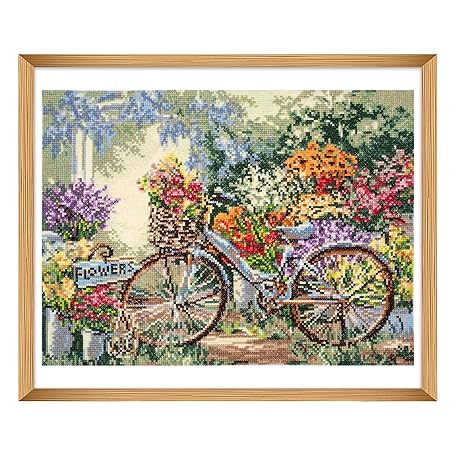 Trimits Large Cross Stitch Kits - Counted Embroidery Needlework for Adults Beginners Kids, Christmas Gifts Wall Art (Frame Not Included), 11 Count, Bicycle