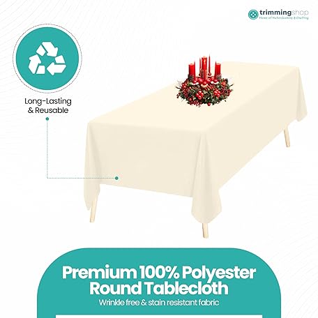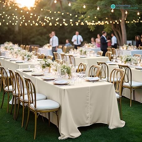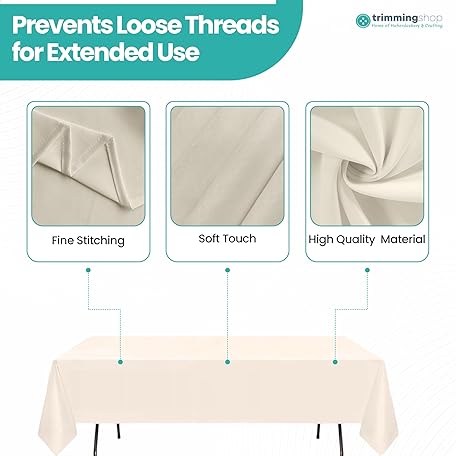 Thông tin sản phẩm Trimming Shop Ivory Rectangle Tablecloths 70 × 144 in (178 × 366 cm), Pack of 1 – Washable Polyester Table Cloth Covers for Weddings, Banquets, Hotels, Parties & Buffet Tables