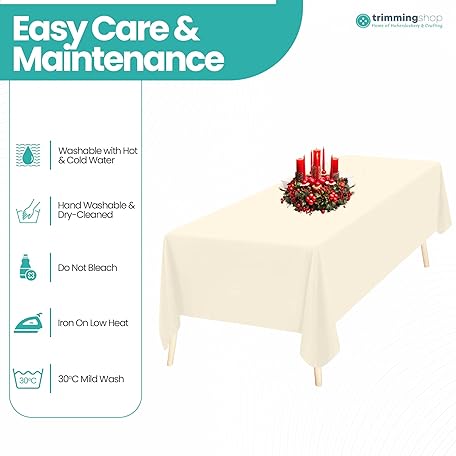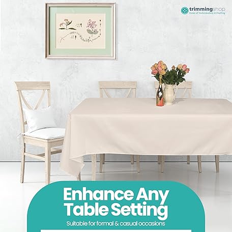 Sản phẩm Trimming Shop Ivory Rectangle Tablecloths 70 × 144 in (178 × 366 cm), Pack of 1 – Washable Polyester Table Cloth Covers for Weddings, Banquets, Hotels, Parties & Buffet Tables đang được bán với giá ưu đãi là $17.6471 tại nước Anh.