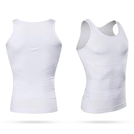 Trimming Shop Men’s Slimming Vest Compression Shirt – Tummy Control Body Shaper Vest for Abdomen, Belly & Waist – Sleeveless Fat Burner, Seamless Shapewear for Gym Workouts