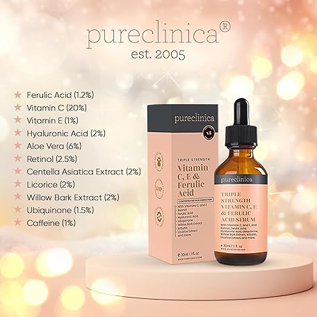 Thương hiệu Pureclinica là cái tên nổi tiếng được rất nhiều khách hàng trên thế giới chọn lựa. Với kiểu dáng đẹp mắt, sang trọng, sản phẩm Triple Strength Vitamin C, E & Ferulic Acid Serum (w/Retinol & double weight Hyaluronic Acid) - 30ml / 1 fl oz là sự lựa chọn hoàn hảo nếu bạn đang tìm mua một món cho riêng mình.