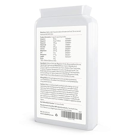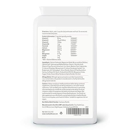 Thông tin sản phẩm Troo Health Care Osteotrition Bone Support Supplement 90 Capsules - Helps Maintain Bone Density and Connective Tissues – Includes Calcium, Magnesium, Vitamin K2, Vitamin D3, and More - UK Made