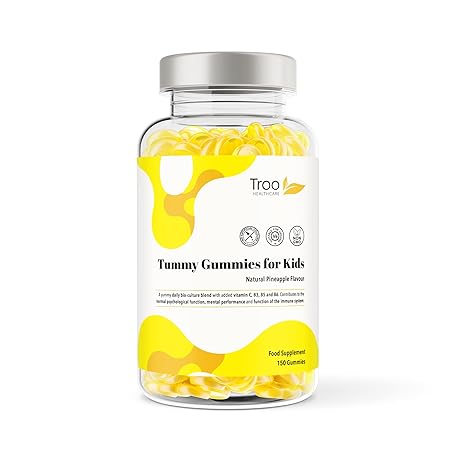 Troo Health Care Tummy Gummies Probiotics with Vitamins for Kids & Adults - 150 Natural Pineapple Active Bacteria Gummies with Vitamin C, B3, B5 & B6 to Support Immune Function & Mental Development