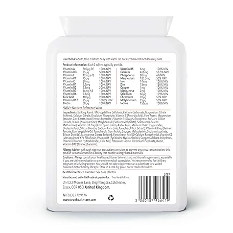 Sản phẩm Troo Health Care Vegan Multivitamins & Mineral Supplement 60 Tablets - 24 Essential Vitamins & Minerals Suitable for Vegans - Daily Tablet to Support Immune Function & Reduce Fatigue đang được bán với giá ưu đãi là $12.8729 tại nước Anh.