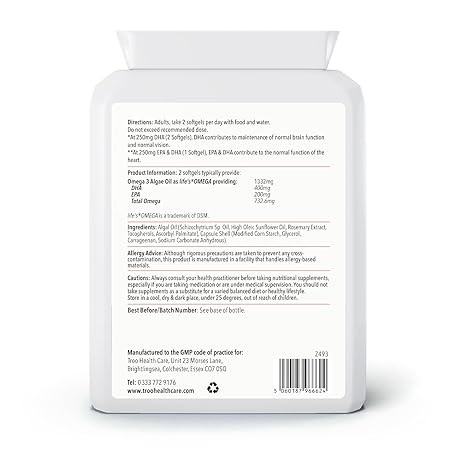 Sản phẩm Troo Health Care Vegan Omega 3 Algal Oil 1332mg Per Serving - Provides 732mg Omegas Including a Minimum of 400mg DHA & 200mg EPA - Sustainable Plant Source Omega Oil Softgels - 90 Capsules - UK Made đang được bán với giá ưu đãi là $27.7841 tại nước Anh.