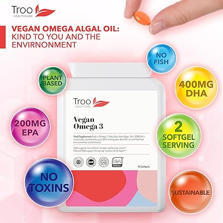 Thương hiệu Troo Health Care là cái tên nổi tiếng được rất nhiều khách hàng trên thế giới chọn lựa. Với kiểu dáng đẹp mắt, sang trọng, sản phẩm Troo Health Care Vegan Omega 3 Algal Oil 1332mg Per Serving - Provides 732mg Omegas Including a Minimum of 400mg DHA & 200mg EPA - Sustainable Plant Source Omega Oil Softgels - 90 Capsules - UK Made là sự lựa chọn hoàn hảo nếu bạn đang tìm mua một món cho riêng mình.