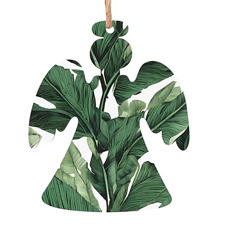 Tropical Banana Palm Leaves Wooden Christmas Ornaments Angel-Shape Indoor Christmas Tree Decorations for Home Farmhouse Holiday Party Christmas Crafts Supplies Keepsake Gifts 2 PCS