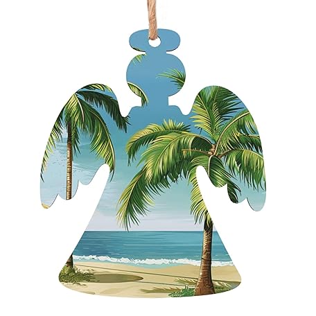 Tropical Palm Tree Printed Wooden Angel-Shape Christmas Decorations 6 PCS Christmas Tree Decorations Holiday Hanging Decor
