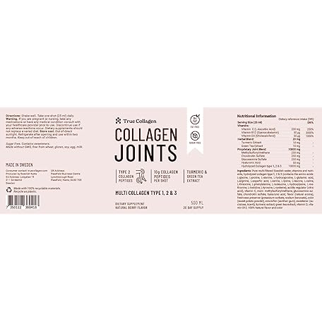 Thương hiệu True Collagen là cái tên nổi tiếng được rất nhiều khách hàng trên thế giới chọn lựa. Với kiểu dáng đẹp mắt, sang trọng, sản phẩm True Collagen Joints | 10,000 mg Hydrolysed Collagen Liquid Supplement - 500 ml, 20 Day Supply | Glucosamine, MSM and Chondroitin for Joints, Hair, Skin and Nails | 100% Natural Berry Flavour là sự lựa chọn hoàn hảo nếu bạn đang tìm mua một món cho riêng mình.