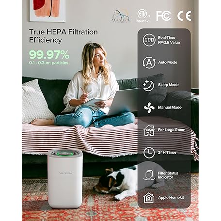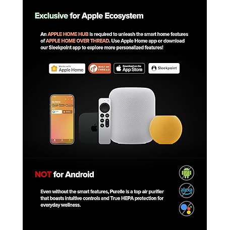 Thông tin sản phẩm True HEPA Air Purifier for Home Large Rooms 1,050 sq ft Air Filters Up to 99.97% PM2.5 Sensor Display HomeKit Over Thread (HomeKit Hub Required) Smart Air Cleaner (Airversa Purelle AP2)