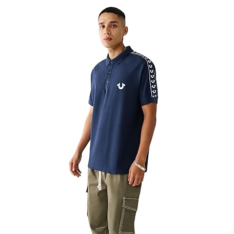 • True Religion Men's Damask Short Sleeve Polo, Dress Blue, S