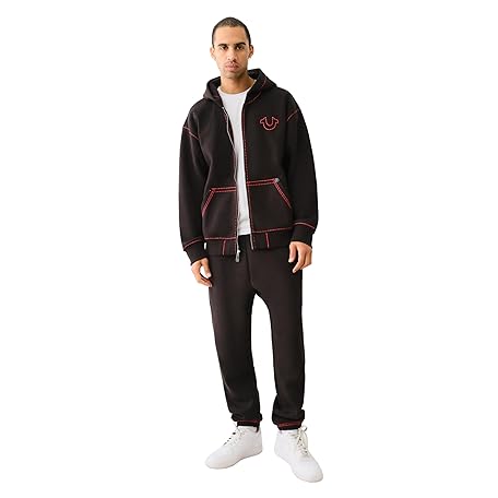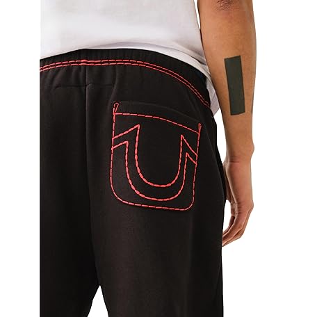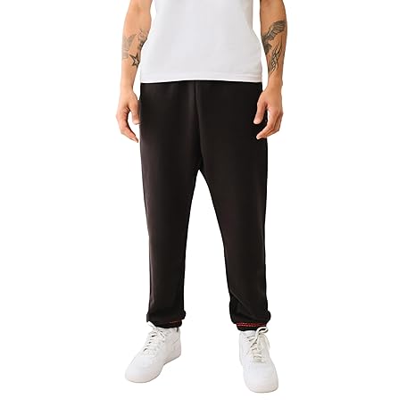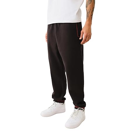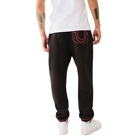 True Religion Men's Super T Joggers - Jet Black | Regular Fit Sweatpants with Contrast Stitching