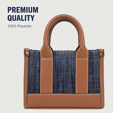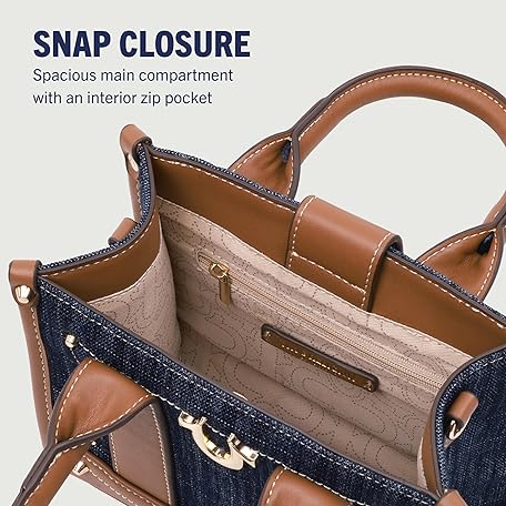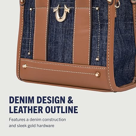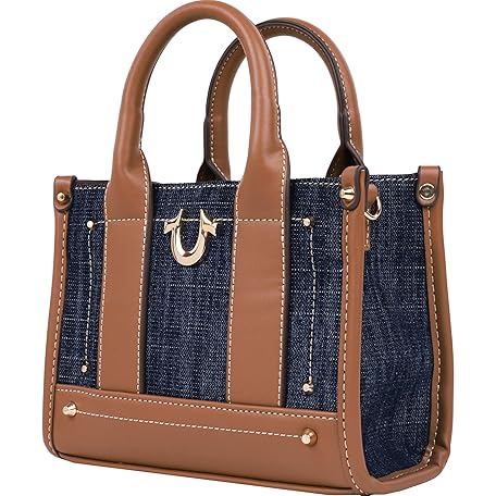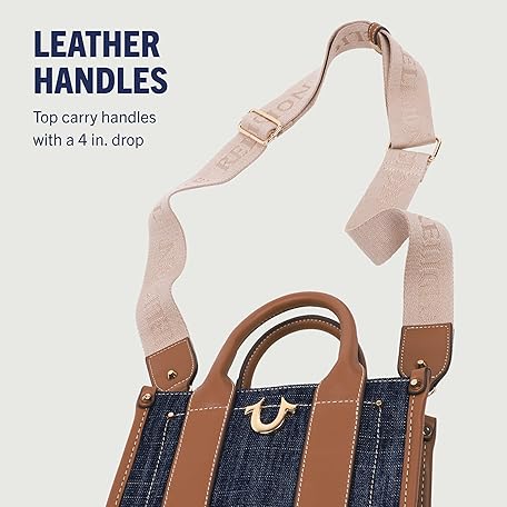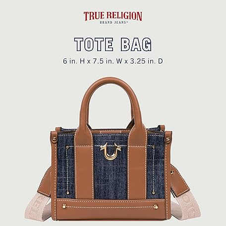 True Religion Unisex Tote Bag Logo Strap, Structured Casual Purse with Top Handles and Crossbody Mini Tote Bag, Dark Denim