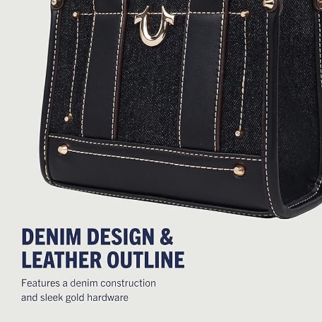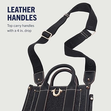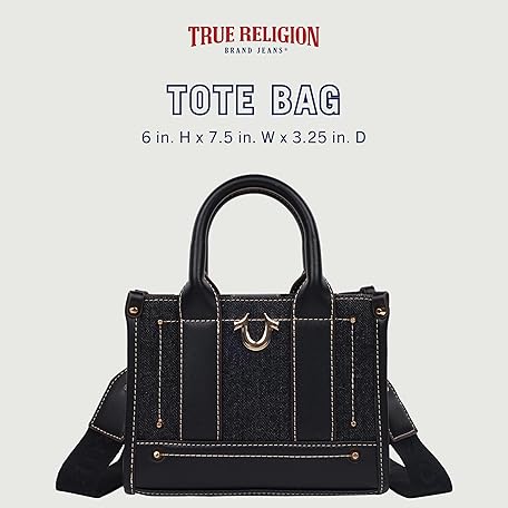 Thông tin sản phẩm True Religion Unisex's Mini Tote Bag with Logo Strap, Structured Casual Purse with Top Handles and Crossbody, Black