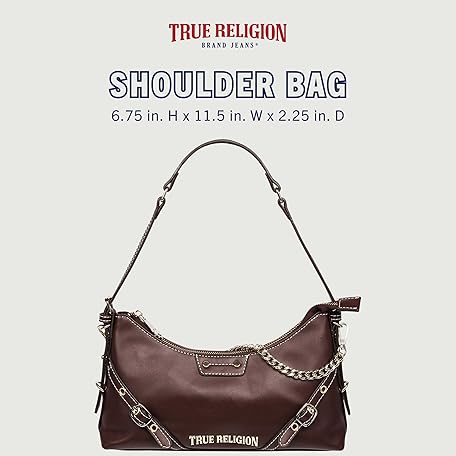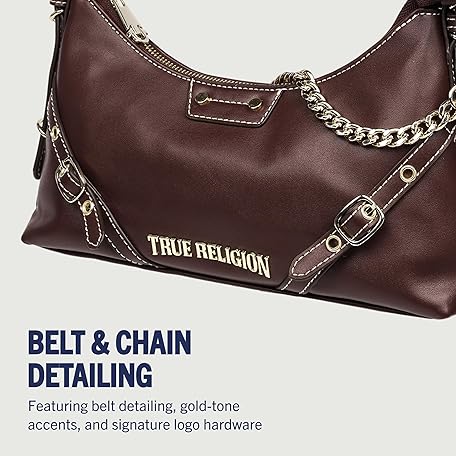 Thông tin sản phẩm True Religion Unisex's Shoulder Bag, Smooth Belted Purse with Chain Handle, Adjustable Strap and Gold Hardware