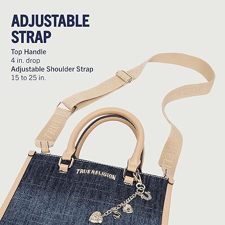 Thông tin sản phẩm True Religion Unisex's Tote Bag, Horseshoe Dangle Colored Purse with Gold Hardware, Dark Denim