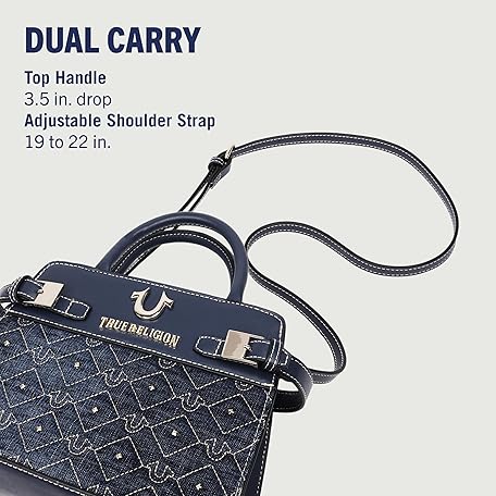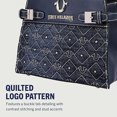 Thông tin sản phẩm True Religion Unisex's Tote Bag, Studded Purse with Quilted Horseshoe Pattern, Dark Denim