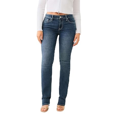 True Religion Womens Billie Stretch Mid Rise Straight Jeans Med Bonechill 29W / 32L