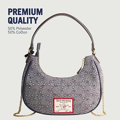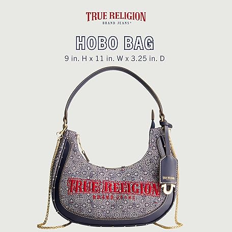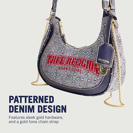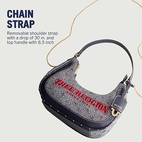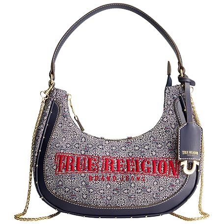 Thông tin sản phẩm True Religion Women's Hobo Bag, Striped Denim Crescent Handbag and Adjustable Chain Strap, Navy