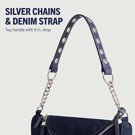 Thông tin sản phẩm True Religion Women's Shoulder Bag Purse, Small Hobo Handbag with Chain Handle, Denim