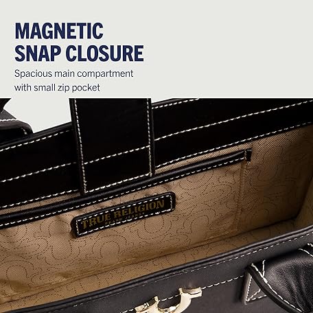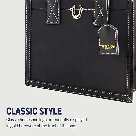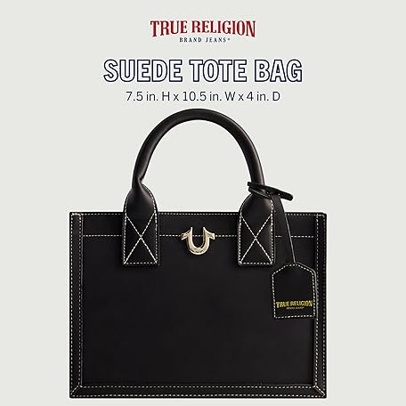 Thông tin sản phẩm True Religion Women's Tote Bag, Faux Suede Medium Travel Purse Handbag with Adjustable Shoulder Strap and Horseshoe Logo, Black