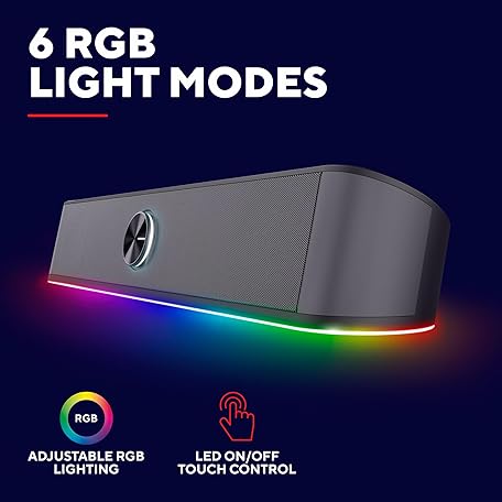Sản phẩm Trust Gaming GXT 1619 Rhox RGB Illuminated Soundbar, PC Speakers, 12W Peak Power, USB Powered Sound Bar, 3.5mm Jack, Plug and Play, Stereo PC Soundbar for Desktop, Laptop, Computer – Black/Grey đang được bán với giá ưu đãi là $42.5754 tại nước Anh.