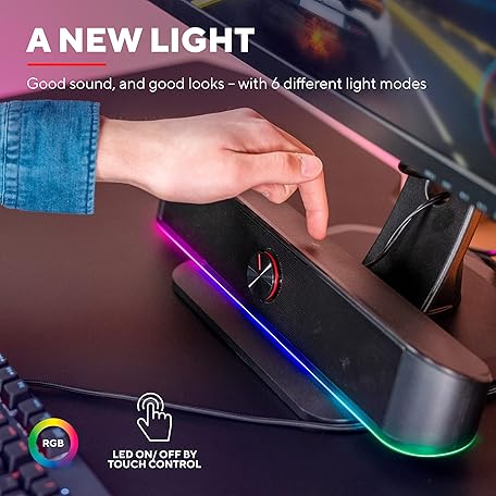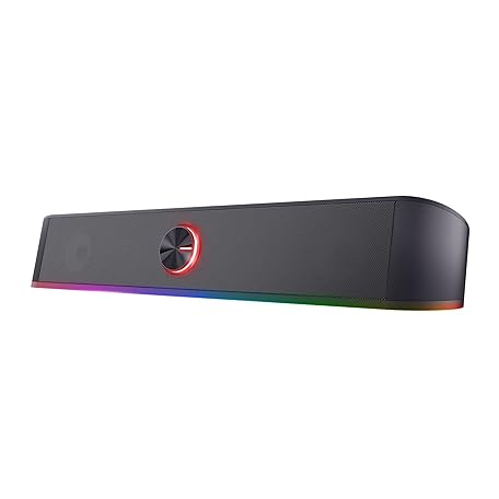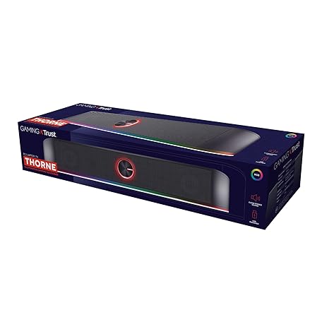 Thông tin sản phẩm Trust Gaming GXT 619 Thorne RGB Illuminated Soundbar, PC Speakers, 12W Peak Power, 3.5 mm Jack, USB Powered Soundbar, Stereo Sound System for PC, Desktop, Laptop, Computer - Black