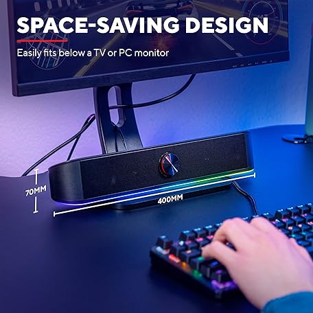 Sản phẩm Trust Gaming GXT 619 Thorne RGB Illuminated Soundbar, PC Speakers, 12W Peak Power, 3.5 mm Jack, USB Powered Soundbar, Stereo Sound System for PC, Desktop, Laptop, Computer - Black đang được bán với giá ưu đãi là $43.927 tại nước Anh.