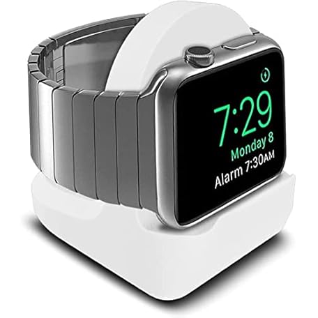 TUCANA Charger Stand Compatible with Apple Watch Series iWatch 10/9/8/7/6/SE/5/4(45mm/44mm/41mm/40mm) and Series 3/2/1, Nightstand Mode, Durable Silicone with Non-Slip Stable Base (White)