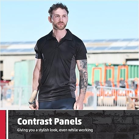 • TuffStuff Elite Polo Shirt for Work - Size Large, Black - 100% Polyester - Easy Care - Lightweight, Breathable & Moisture-Wicking with Contrast Panels - Versatile Work Wear