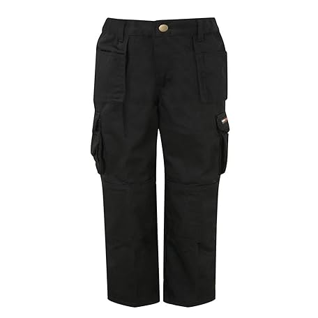 Tuffstuff Kids Pro Work Junior Childs Trousers with Kneepad Pouches & Mobile Pocket - Triple Stitched & Double Thickness Back Pockets - School, Camping, Casual - Black - 11-12 Years
