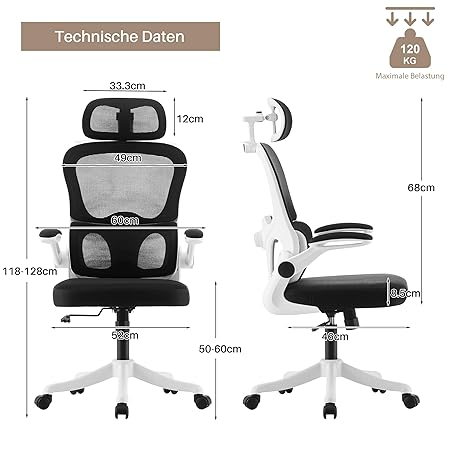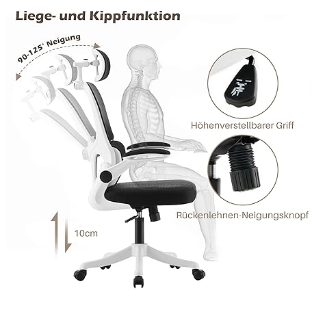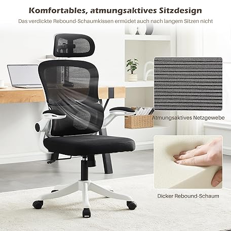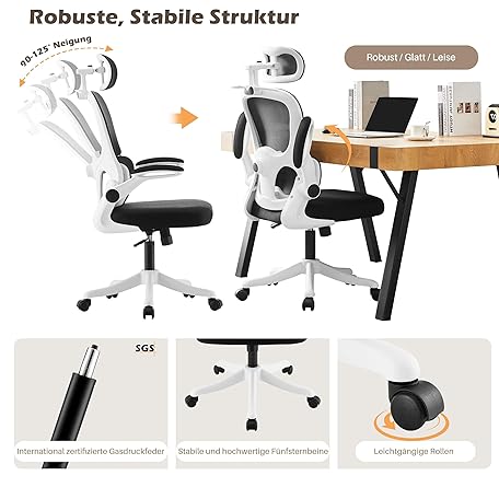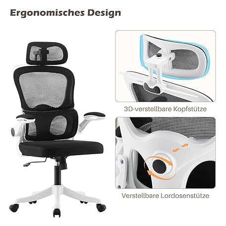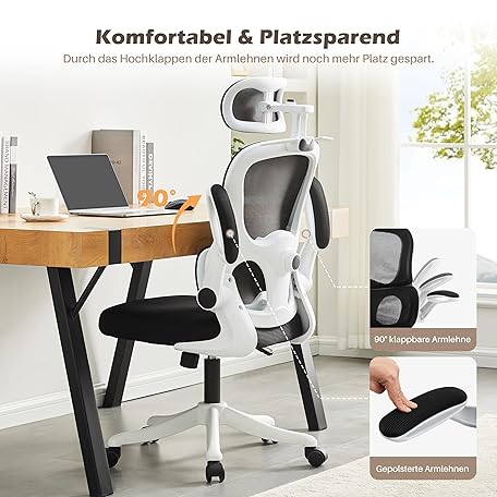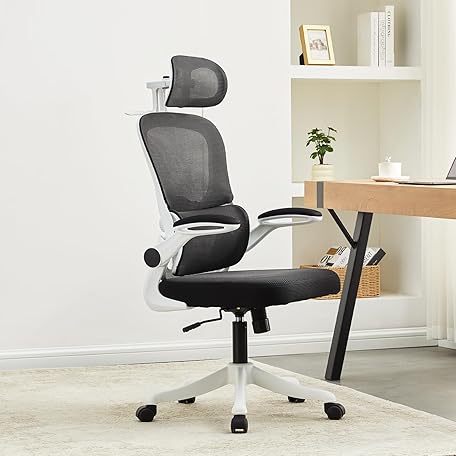 Thông tin sản phẩm TUKAILAi Ergonomic Office Chair, Executive Computer Chair with Lumbar Support & Headrest Adjustable, 90°Flip-up Armrest, High Back Mesh Swivel Task Chair for Home Office Work (White)