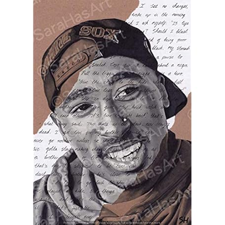 Tupac Shakur Portrait - Giclée art print with Changes song lyrics. Pen Drawing A5 A4 A3 size 2pac Hip Hop fine art poster artwork