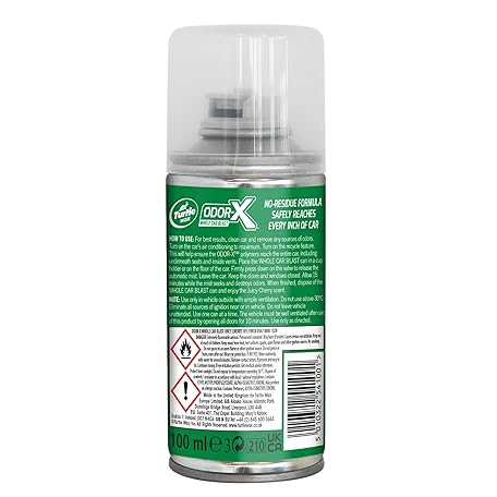 Thông tin sản phẩm Turtle Wax Odor-X Whole Car Blast Air Freshener, Cherry Scent, One-time Use, Car Odour Eliminator Removes Unwanted Smells Permanently, Car Fragrance Lasts up to 30 days, 50ml, Pack of 2