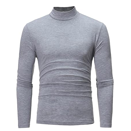 • Turtleneck Men Shirt Medium High Neck Bottoming Shirt Long Sleeves Stretch Blouse Comfables Thermal Basic Pullover Solid Color Slim Fitting Underwear Autumn Winter Daily Tee Pullover Gray