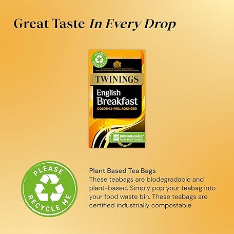 Thông tin sản phẩm Twinings English Breakfast Black Tea Golden, Well Rounded & Full Bodied, 40 Biodegradable Tea Bags