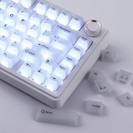Sản phẩm TYRIXKI Clear Keycaps, White Custom Keycaps 75 Percent, 123 Keys Shine Through Transparent Jelly Cute Keycap, PC Material Cherry Profile Keyboard Key Cap Set for Cherry Gateron MX Mechanical Keyboard đang được bán với giá ưu đãi là $45.8236 tại nước Anh.