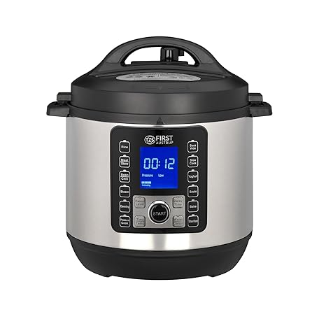 TZS First Austria 6L Electric Pressure Cooker, 1000W, 12 Programmes, Sous Vide 25–90°C, Timer, Keep Warm, Non-Stick Pot, Steam Plate, Spoon, Cup