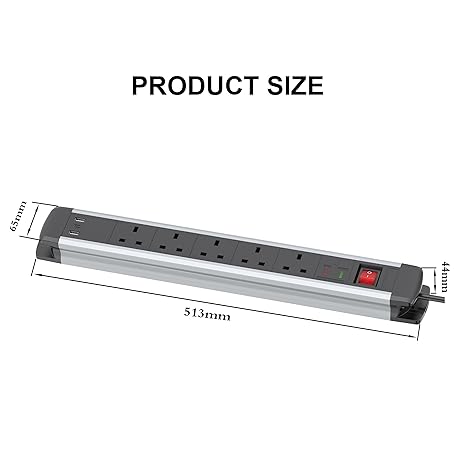 Thông tin sản phẩm UCOMEN 5 Way Extension Lead with 20W USB A and USB C, Surge Protector Power Strip with 1 Switch and 1.5 Meter Extension Cord, 13A/3120W