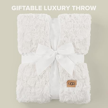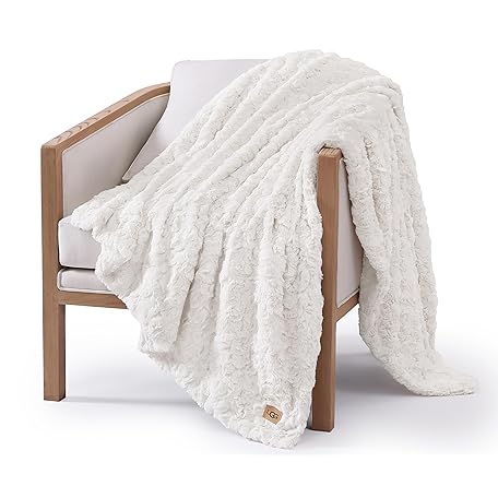 • UGG 10483 Adalee Soft Faux Fur Reversible Accent Throw Blanket Luxury Cozy Fluffy Fuzzy Hotel Style Boho Home Decor Soft Luxurious Comfy Blankets for Couch, 70 x 50-Inch, Natural