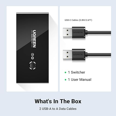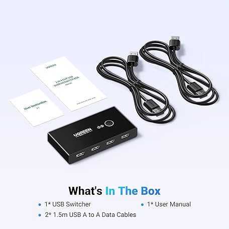 Thông tin sản phẩm UGREEN USB Switch, 2 In 4 Output USB KVM Switcher,2 Computers Share USB 4 USB A Devices Compatible with Keyboard and Mouse,Scanner, Printer with 2 USB A to A Cable