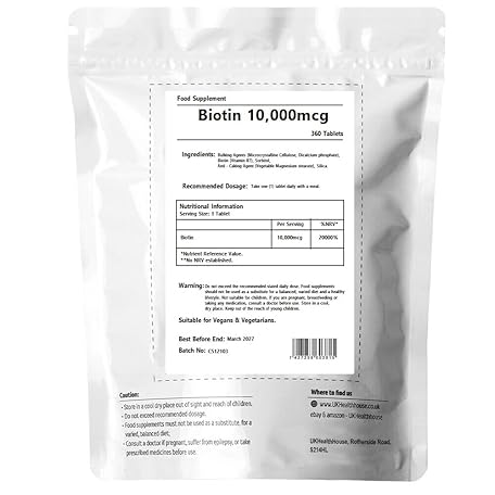 Thông tin sản phẩm UKHealthHouse Biotin 10,000mcg 360 Tablets Vitamin for Skin, Hair Growth & Strong Nails High Strength Natural Supplement B7 Vitamins for Men & Women
