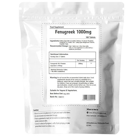 Thông tin sản phẩm UKHealthHouse Fenugreek 1000mg x 180 Tablets - None Capsules High Strength Herbal Supplements Gluten Free, Non-GMO, Vegetarian, Vegan Pills