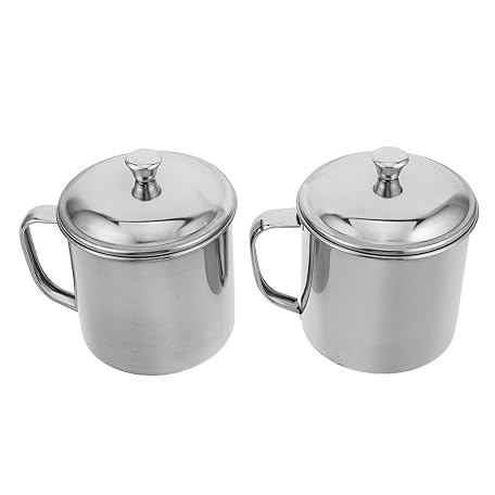 ULTECHNOVO 2Pcs Stainless Steel Roasting Tin Cups with Lids and Handles, 9Cm Diameter Travel Mugs for Camping, Hiking, Backpacking, Stainless Steel Coffee and Hot Drink Cups