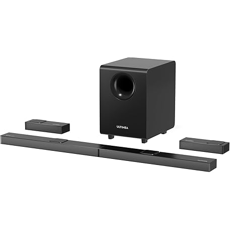 ULTIMEA 7.1.4ch Sound Bar for TV, with Dolby Atmos, 740W Soundbar Surround Sound System, with Adjustable 8" Wireless Subwoofer and 2 Rear Speakers, Home Theatre Sound Bars for Smart TV, Nova S90