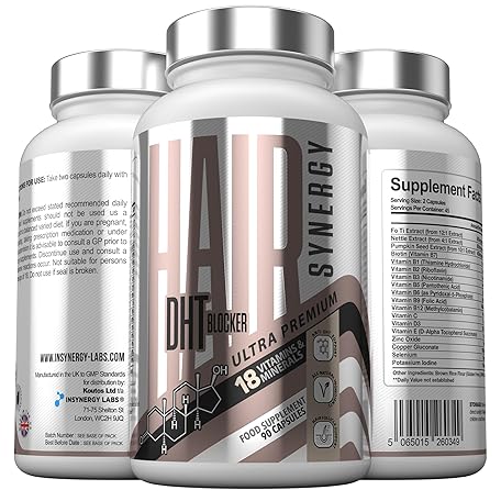 Sản phẩm Ultra Premium DHT Blocker Hair Growth Vitamins – Hair Synergy, The UK’s #1 Hair Thickening DHT Blocker Hair Growth Supplements for Women & Men | 10,000mcg Biotin Tablets, Pumpkin Seed Oil, 90 Capsules đang được bán với giá ưu đãi là $52.5162 tại nước Anh.