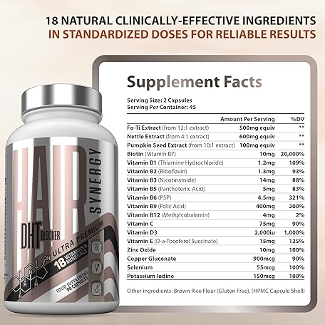 Thông tin sản phẩm Ultra Premium DHT Blocker Hair Growth Vitamins – Hair Synergy, The UK’s #1 Hair Thickening DHT Blocker Hair Growth Supplements for Women & Men | 10,000mcg Biotin Tablets, Pumpkin Seed Oil, 90 Capsules